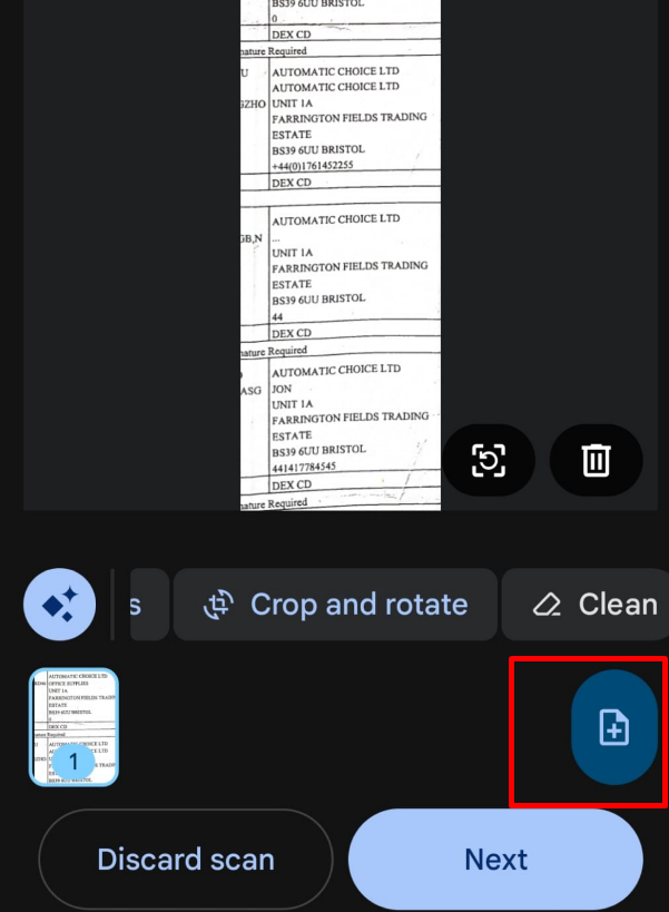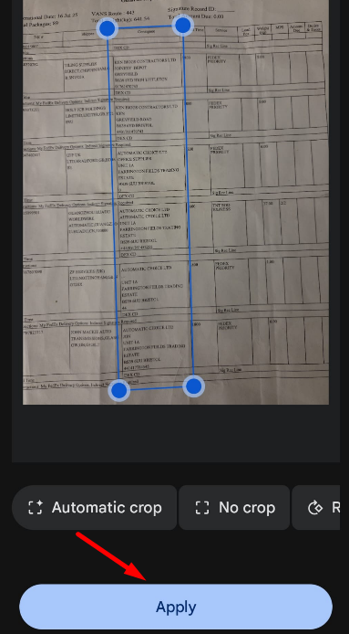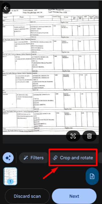 Tap the 'Crop and rotate' button shown in the image below. This will highlight the edges of your document.