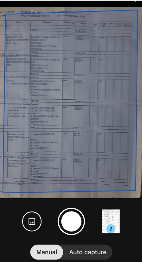 Then focus your camera on the manifest. You can either let it scan automatically or you can tap the button as if taking a picture.