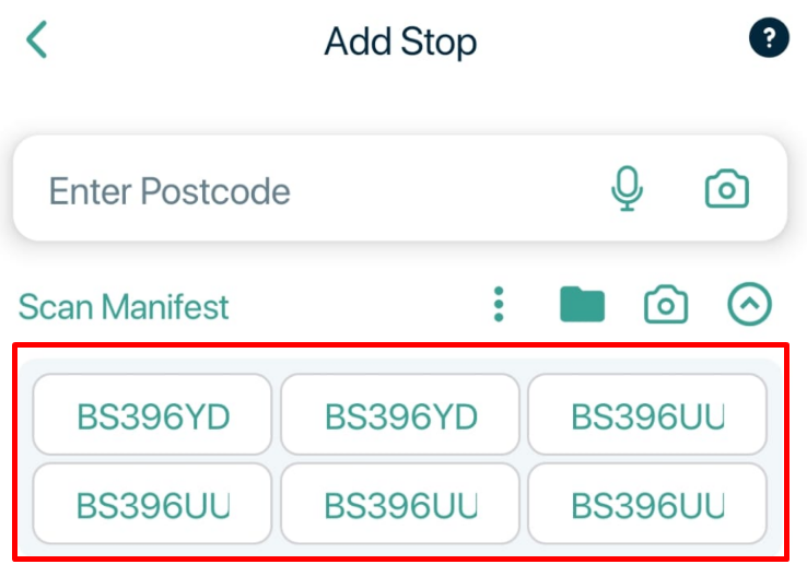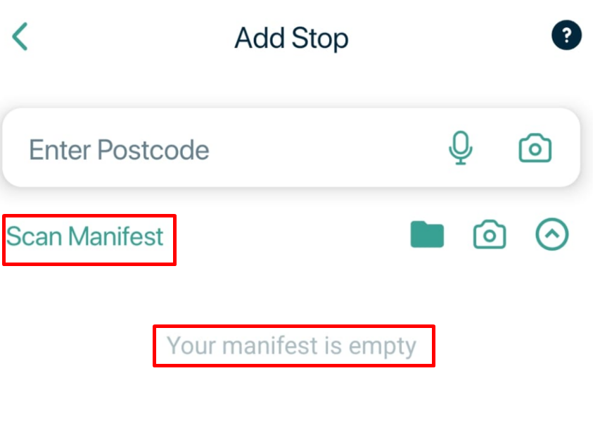 The 'Scan Manifest' section is shown just under the 'Enter Postcode' slot.