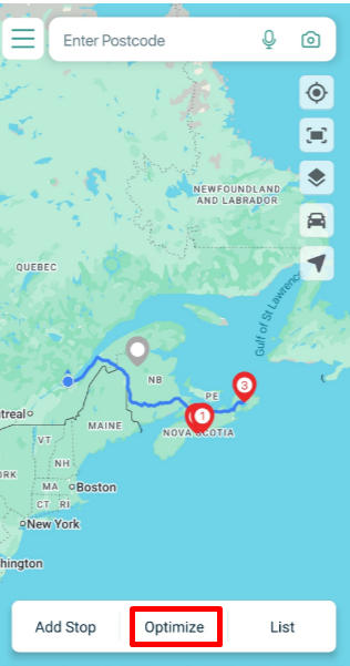 Now select 'Optimize' from the bottom of the screen as shown below to place your stops in a logical order.