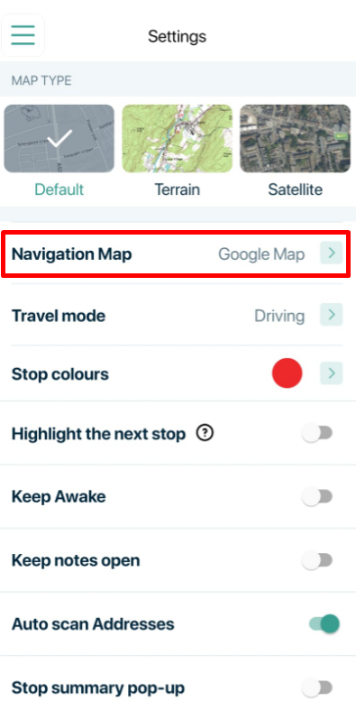 With Delm8 route planner you get to access to a wide variety of maps to choose from. Our default map is Googlemaps, but you can choose anything from Waze and Apple maps to specialist ones like Sygic and Trucklords/Eurowag for larger vehicles.