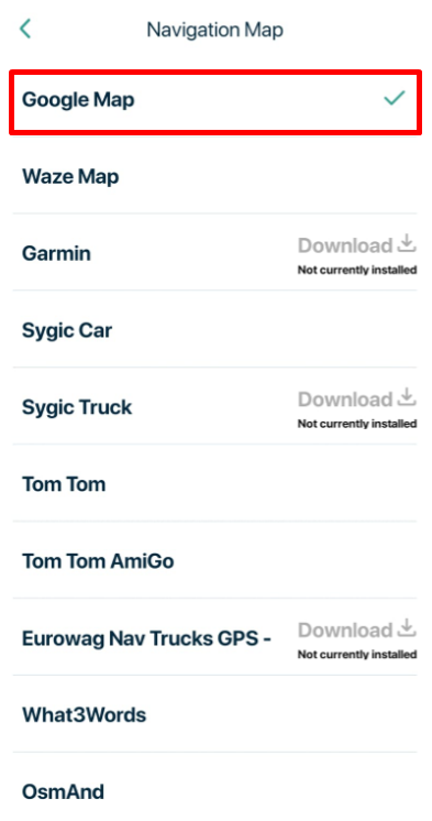 - Here you will find a list of compatible mapping apps. Choose the one you want and that will become your new default map.