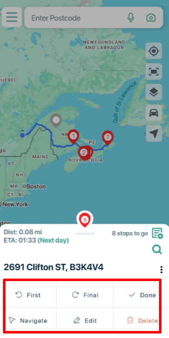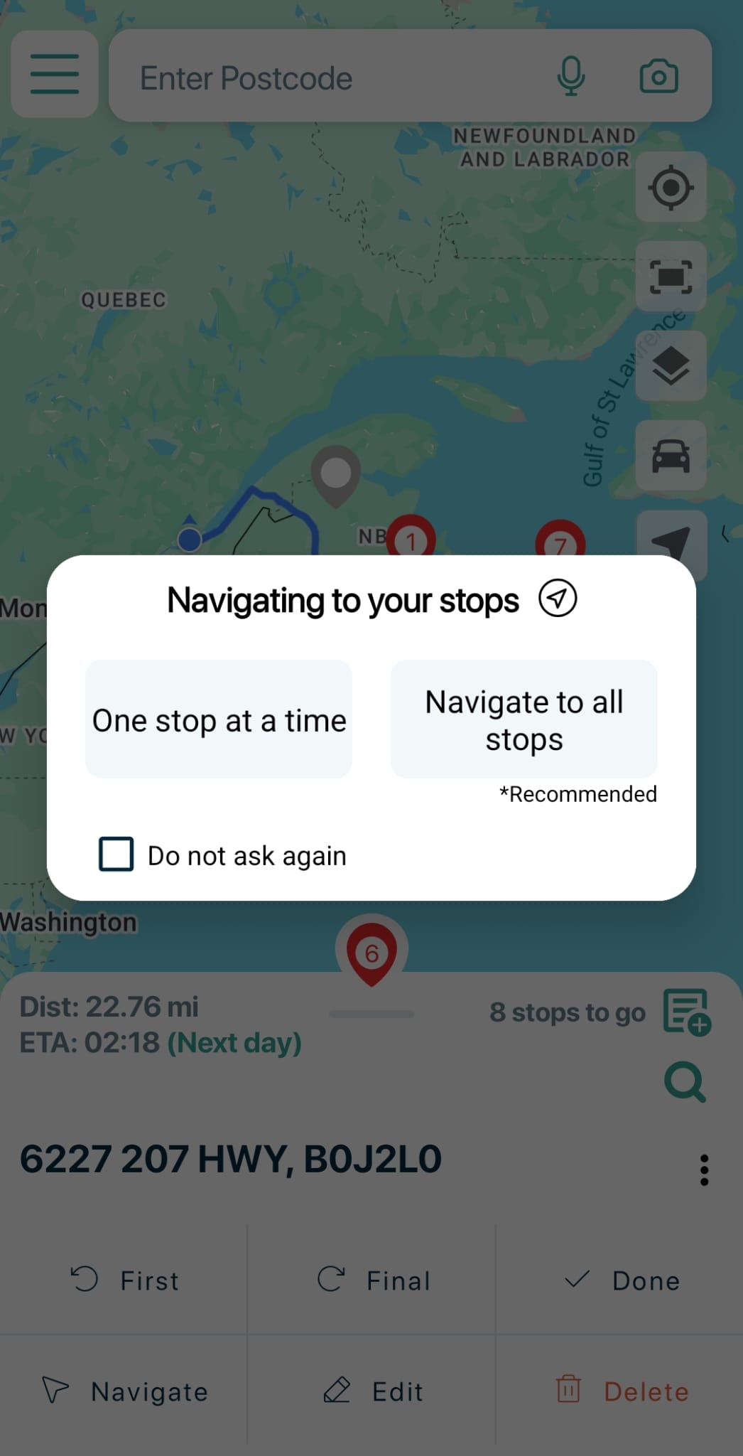 to either navigate to a single stop, or choose to send all your stops to