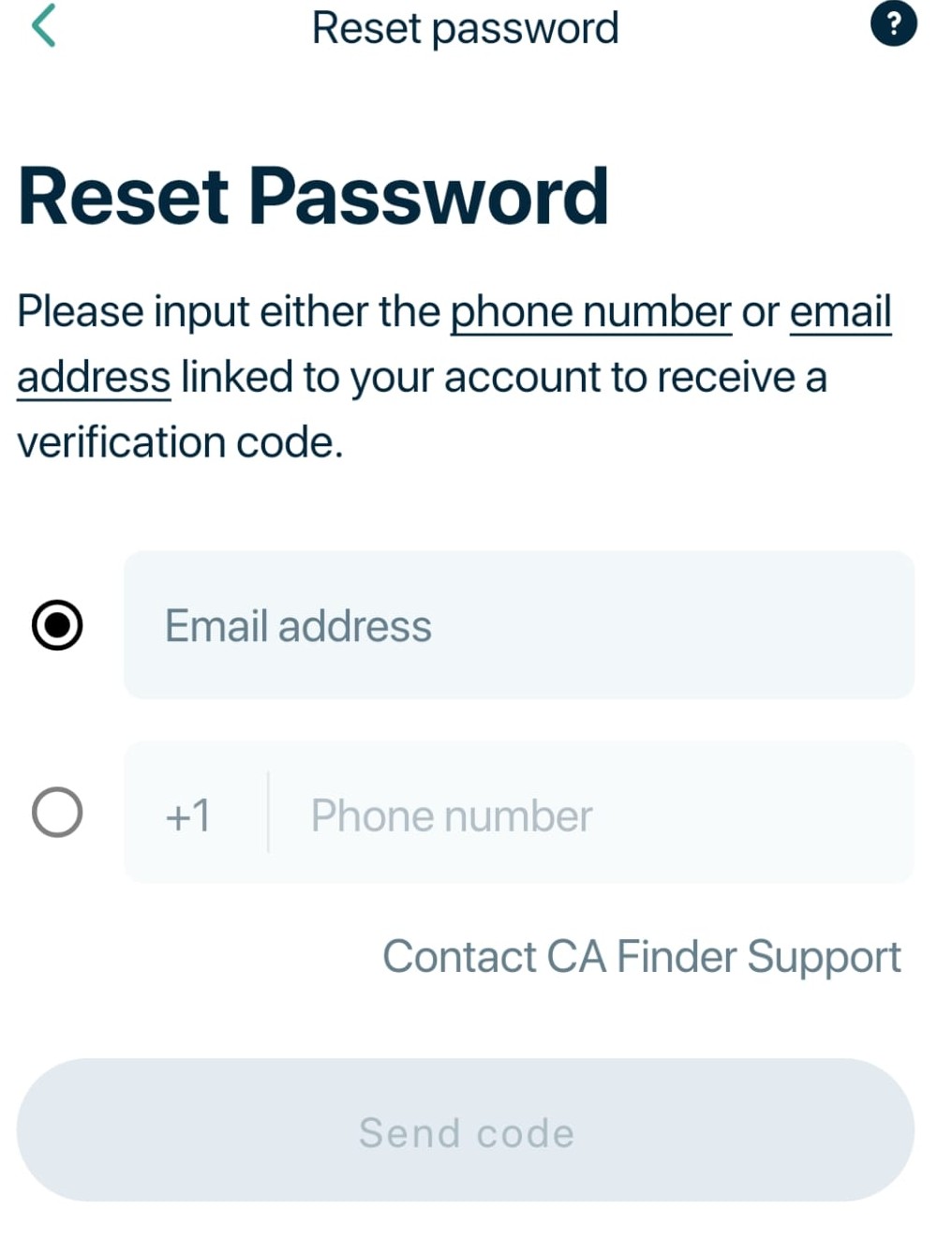 Next, input your email address to receive a reset code. Then, check your inbox - it may take a minute or two to arrive.